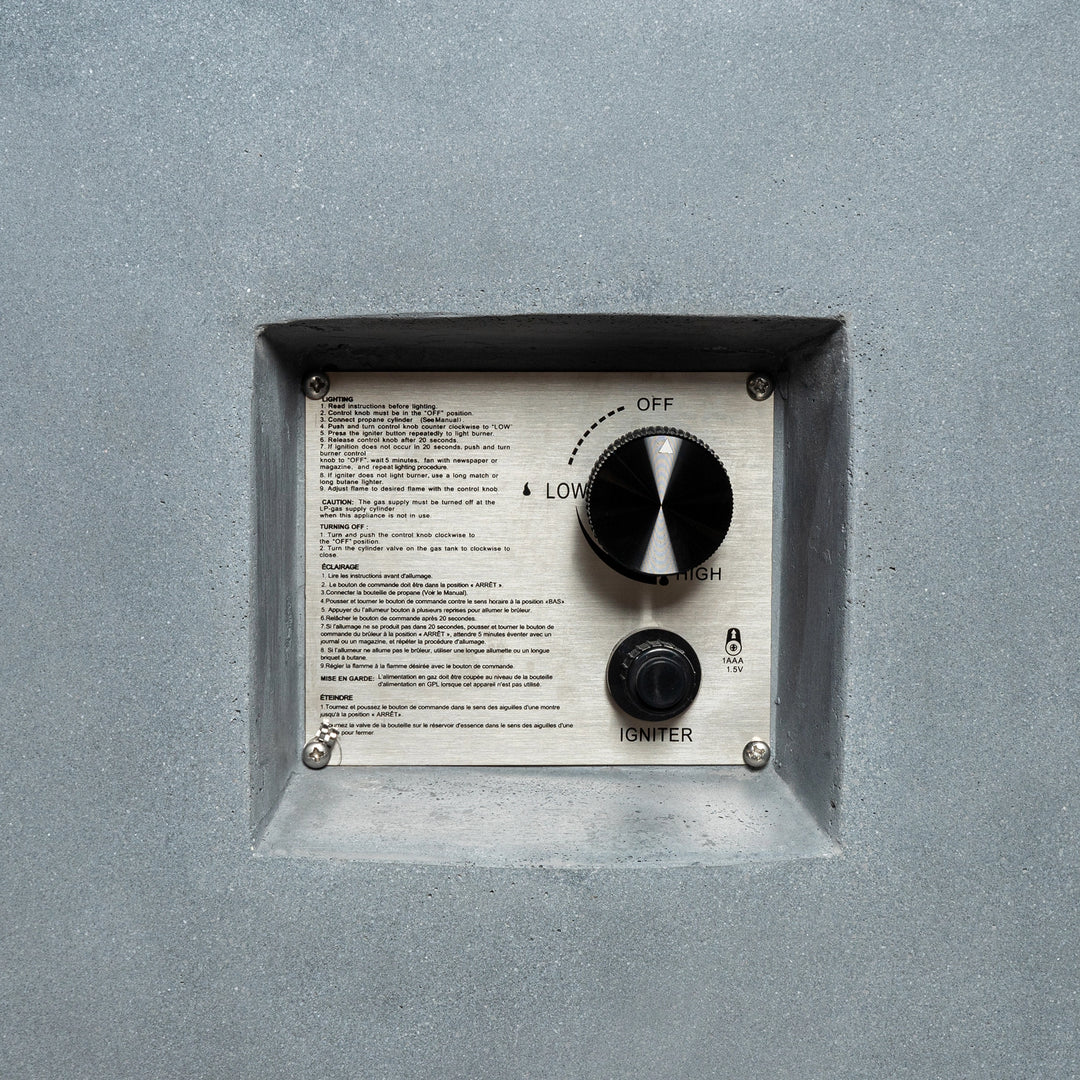 At the heart of this round concrete fire pit with hidden propane tank is a durable stainless steel burner rated at 65,000 BTUs. Starting the fire is just as easy, thanks to the user-friendly push-button ignition system, you can enjoy your fire in seconds without any hassle.