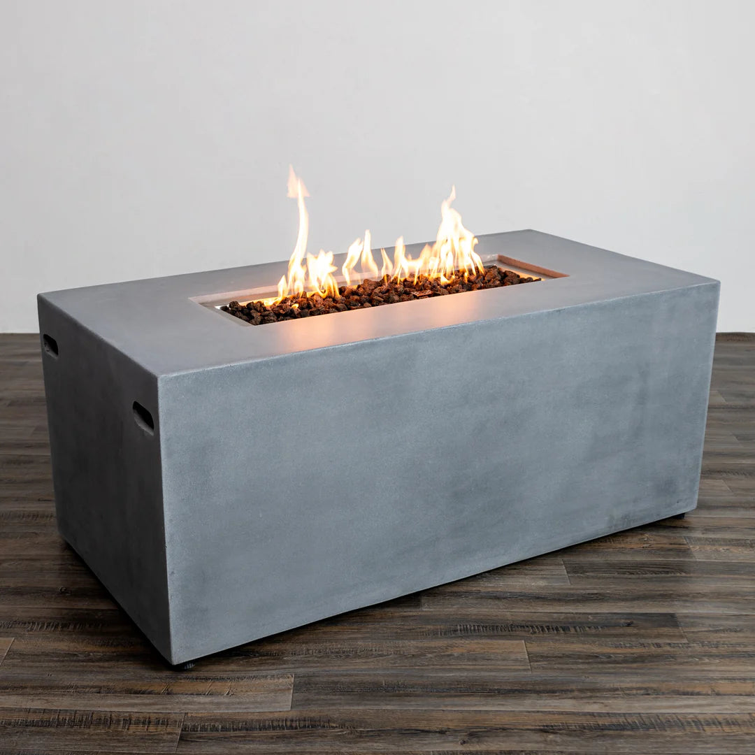 The Beton 55 Inch Rectangle Fire Pit with Propane Tank Inside stands out because of its smart design and durable materials. Made from glass fiber reinforced concrete (GFRC), this rectangle fire pit with propane tank inside is colorfast and built to resist cracking, moisture, UV rays, and harsh weather. It stays looking sharp for years with very little maintenance.