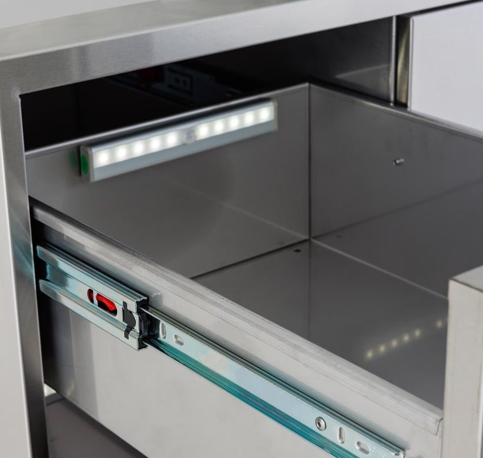 - Drawer LEDs require 4 AAA batteries to operate, no transformer needed