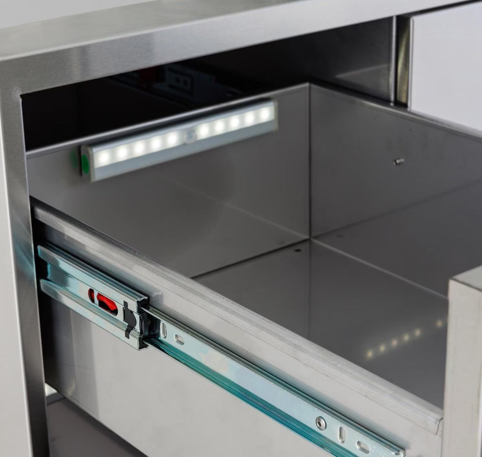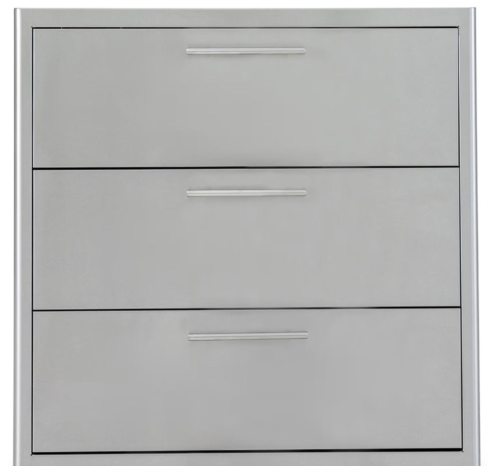 - Large drawers add valuable storage space in your outdoor kitchen.