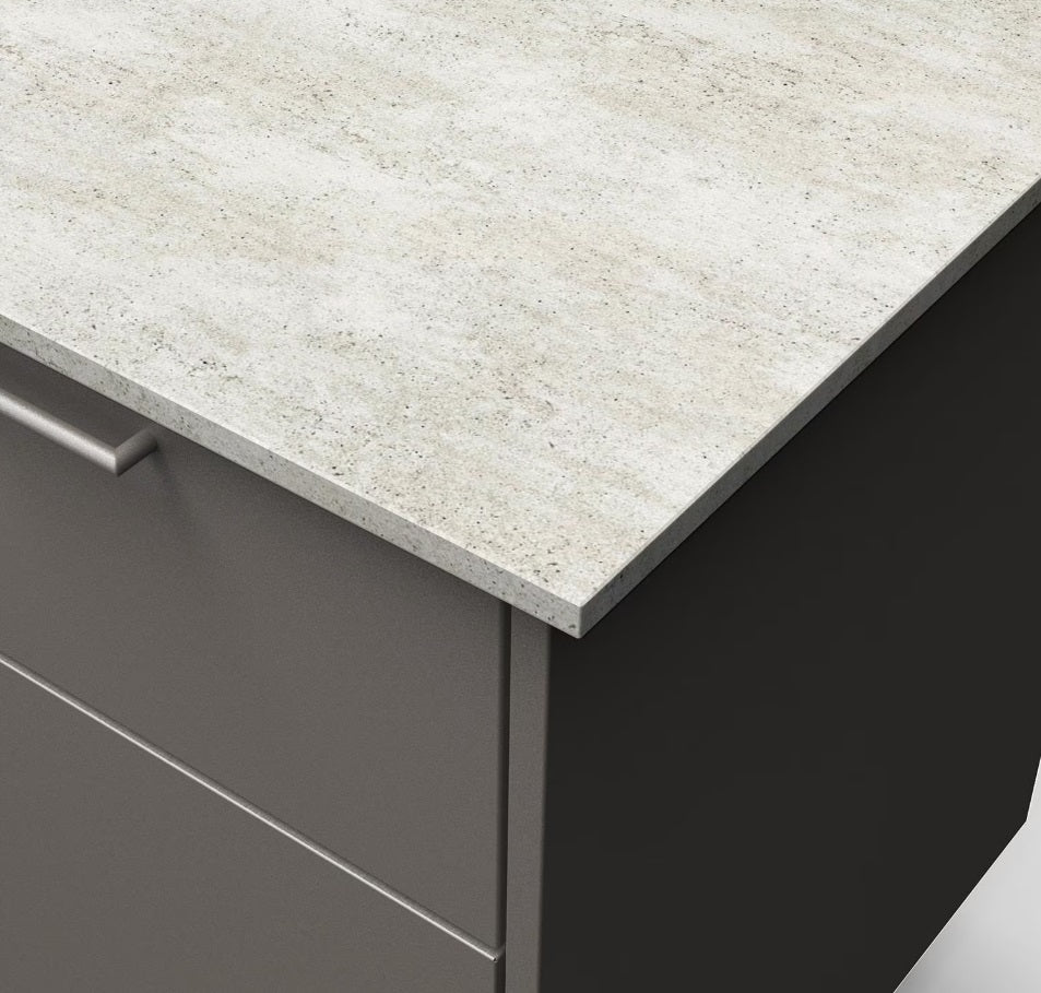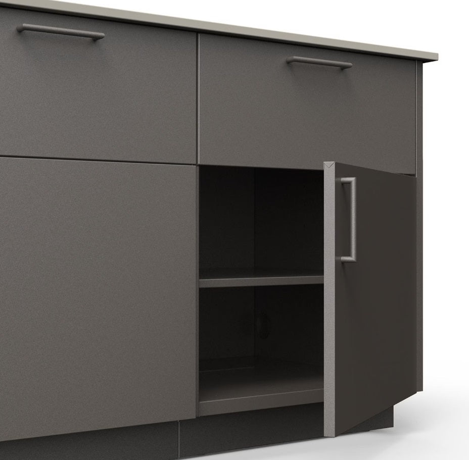 - Powder-coated Gunmetal NACRAE anti-microbial finish paried with a durable Keon Premium Dekton countertop