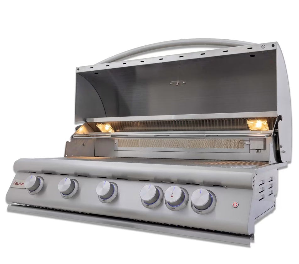 - Features a Blaze Premium LTE+ 5-Burner Propane Grill
