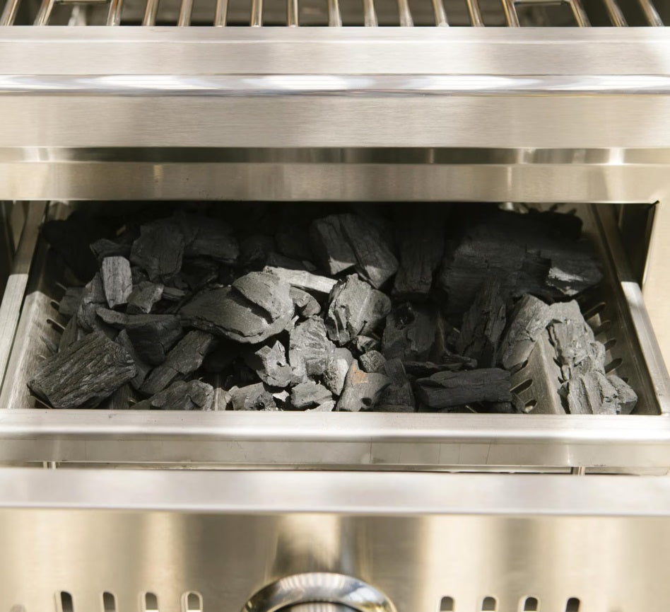 Enjoy the convenience of a gas grill and the flavor of a charcoal grill