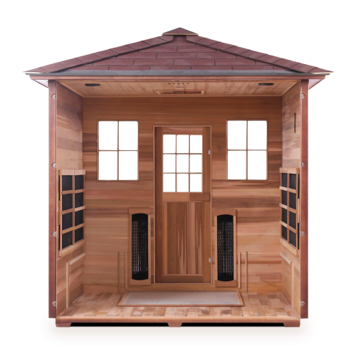 This is the largest hybrid sauna that we have. It is the ultimate sauna. This hybrid sauna is perfect for 5 people. As a model in the SAPPHIRE series, it is constructed with privacy in mind. Canadian natural red cedar wood is a perfect component to a sauna if you’re going to spend a lot of time in it.