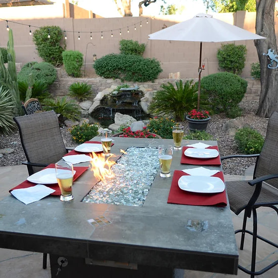 Entertainer Bar Gas Fire Pit Table with fire glass