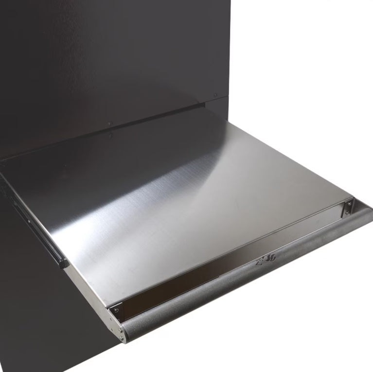 - Stainless steel cart with stainless steel handles, pull-out side-shelves & height-adjustable tool holder