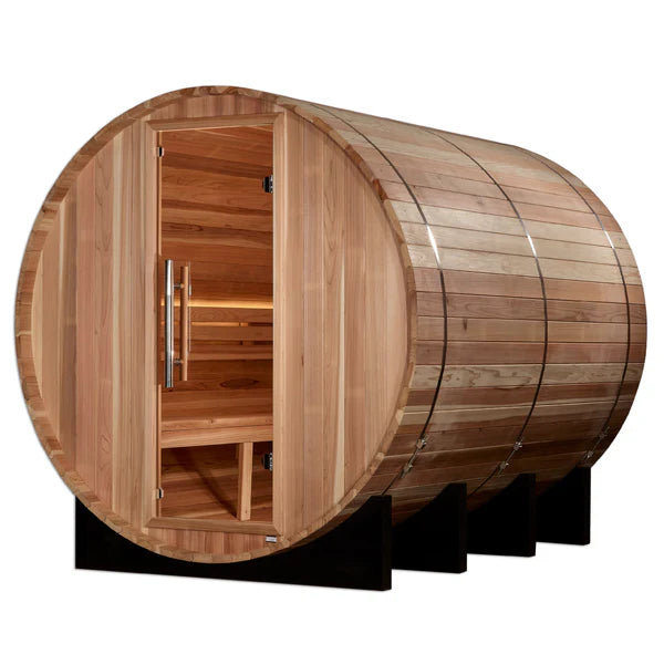 This 6-person traditional barrel sauna provides maximum usable space while minimizing excess cubic feet, allowing the sauna to heat quickly and efficiently. It is the perfect sauna to create your outdoor paradise or adding it as an additional feature to your backyard patio.