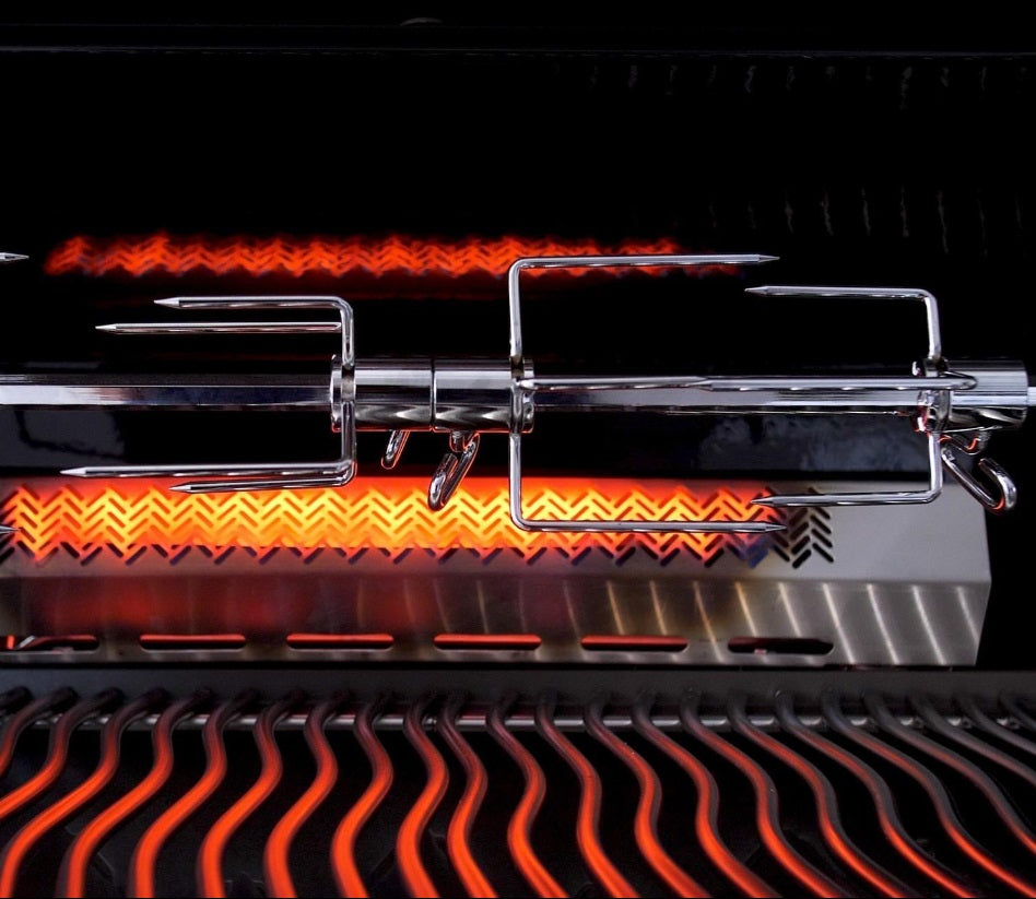 - Rear infrared rotisserie burner and rotisserie kit allows you to slow roast food with restaurant quality results