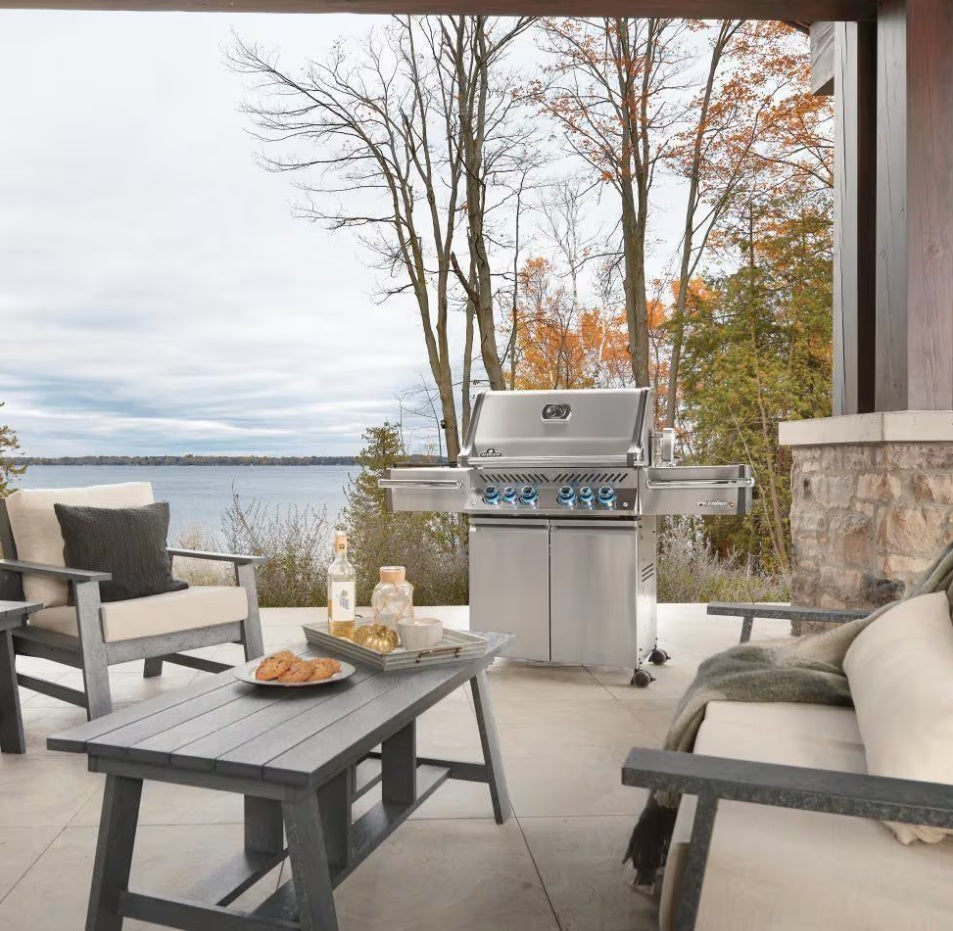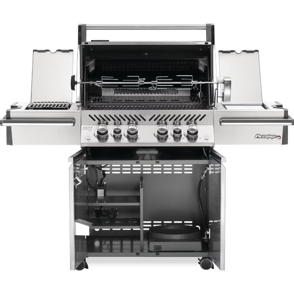 Napoleon Prestige PRO 500 Propane Grill with Infrared Rear Burner, Infrared Side Burner, And Rotisserie Kit On Stand