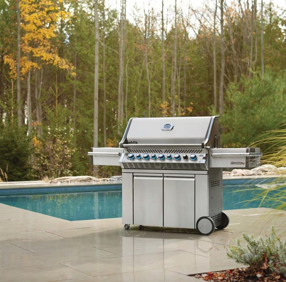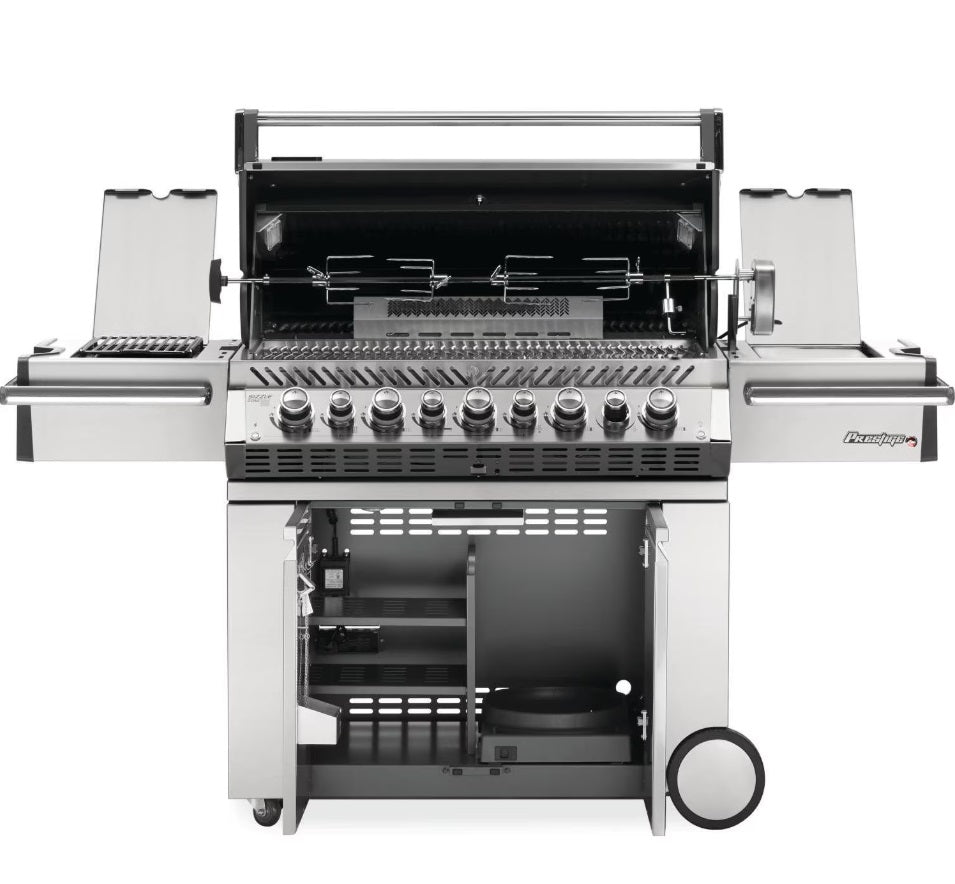Napoleon Prestige PRO 665 Propane Gas Grill with Infrared Rear Burner, Infrared Side Burner And Rotisserie Kit On Stand