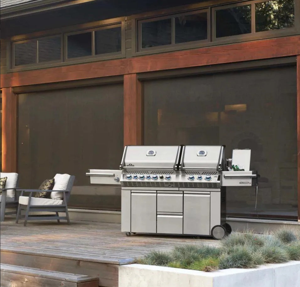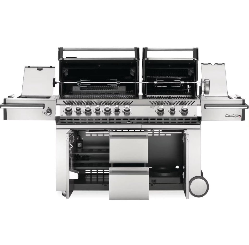 Napoleon Prestige PRO 825 Propane Gas Grill With Infrared Rear Burner, Double Infrared Sear Burner, Side Burner And Rotisserie Kit On Stand