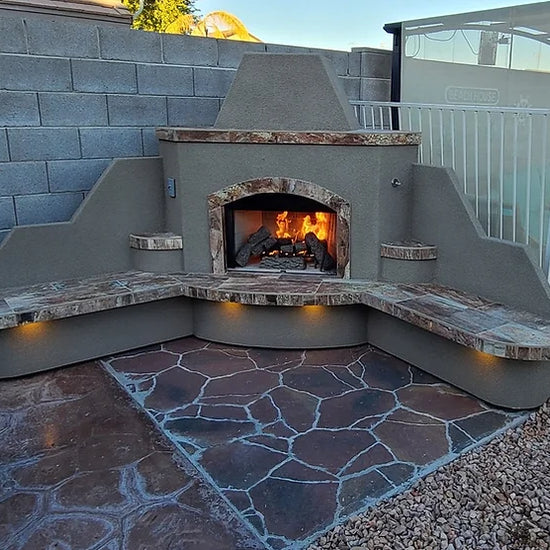 From the 90 Degree corner 8’ Long x 6’ tall Outdoor Fireplace